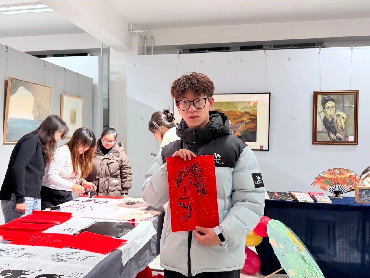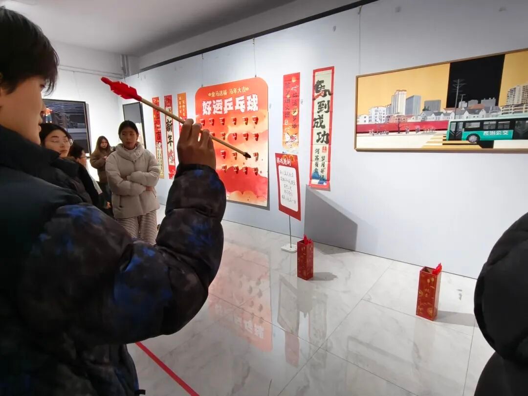 12月20日晚,南校区3号教学楼1层展厅张灯结彩,人头攒动,美术系“艺润芳华”迎新游园会隆重举行。欢声笑语间,师生携手解锁艺术乐趣,喜迎2026年的到来。