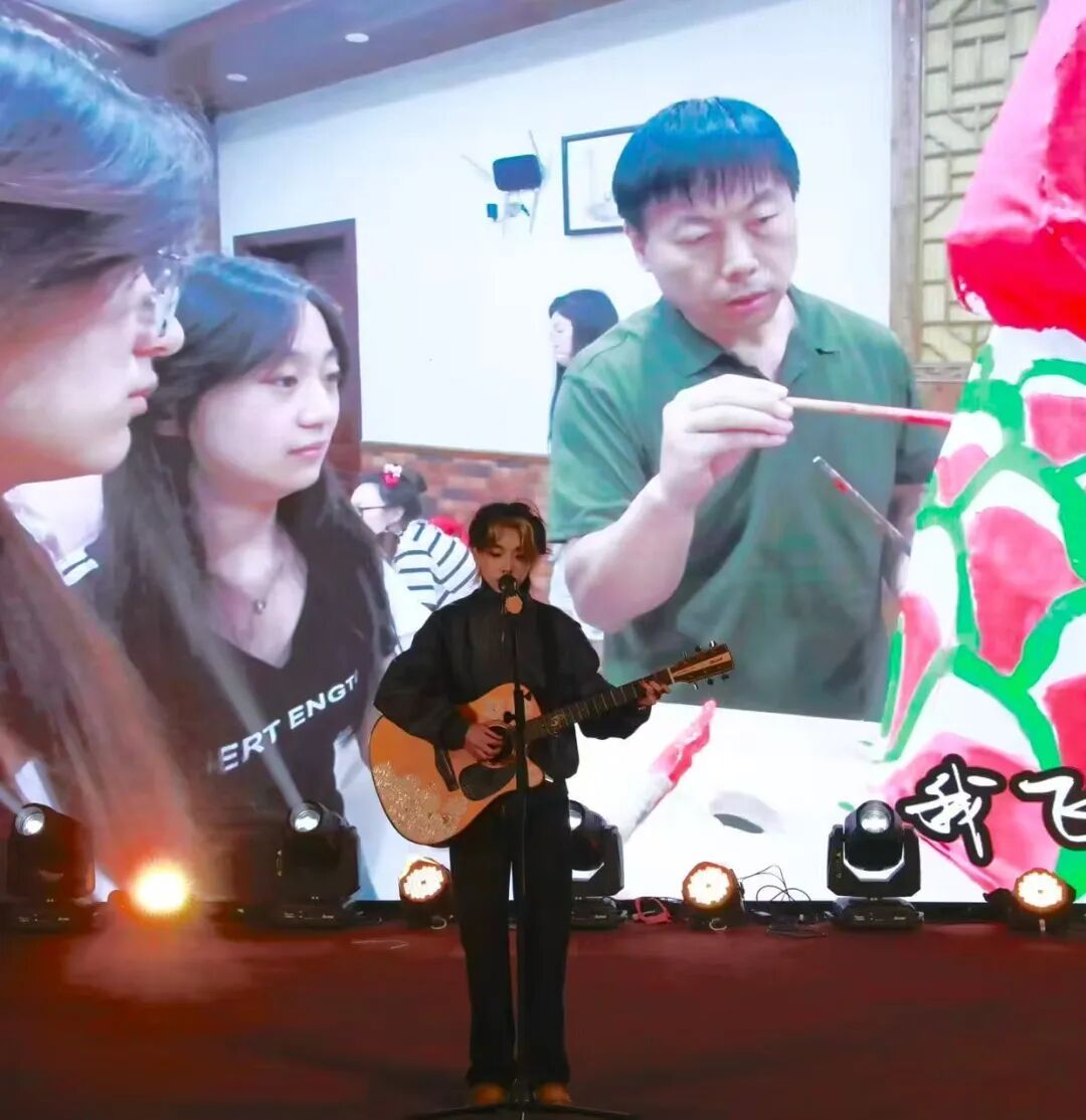 02级美术教育专业校友连凯携隐乐队惊喜登台,瞬间点燃全场热情!一曲《海阔天空》引发全场大合唱,将追梦路上的执着与坦荡诠释得淋漓尽致。