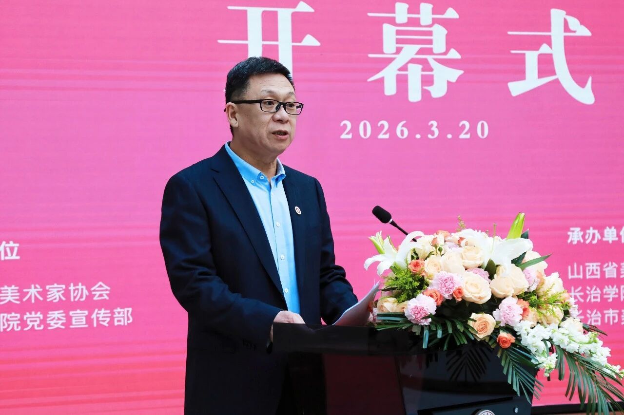 开幕式上,史晓东副书记致欢迎辞,代表学校向各位领导、嘉宾和参展艺术家表示欢迎与感谢,对展览举办表示祝贺。他指出,本次展览精选82件漆画精品,含全国美展入选及进京作品,尽显传统匠心与时代创新,是山西漆画高质量发展的最新成果。长治学院深耕美育育人、重视传统文化传承创新,此次巡展落地为师生搭建了优质艺术交流平台,为学科建设与美育实践注入新动能。学校将以此为契机,深化校地与艺术界合作,推动漆艺与太行文化、非遗传承、美育教学深度融合,助力山西文化强省建设。