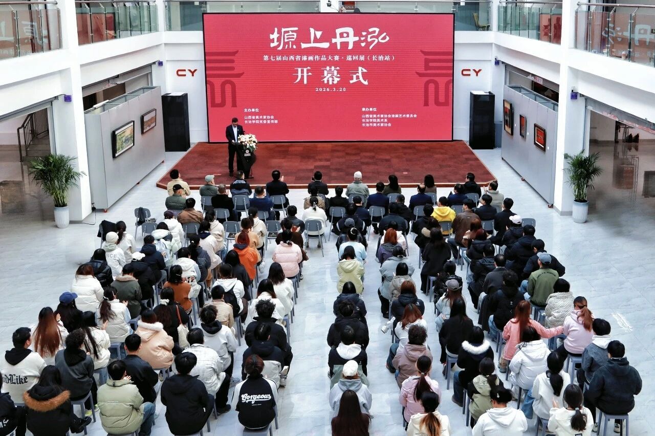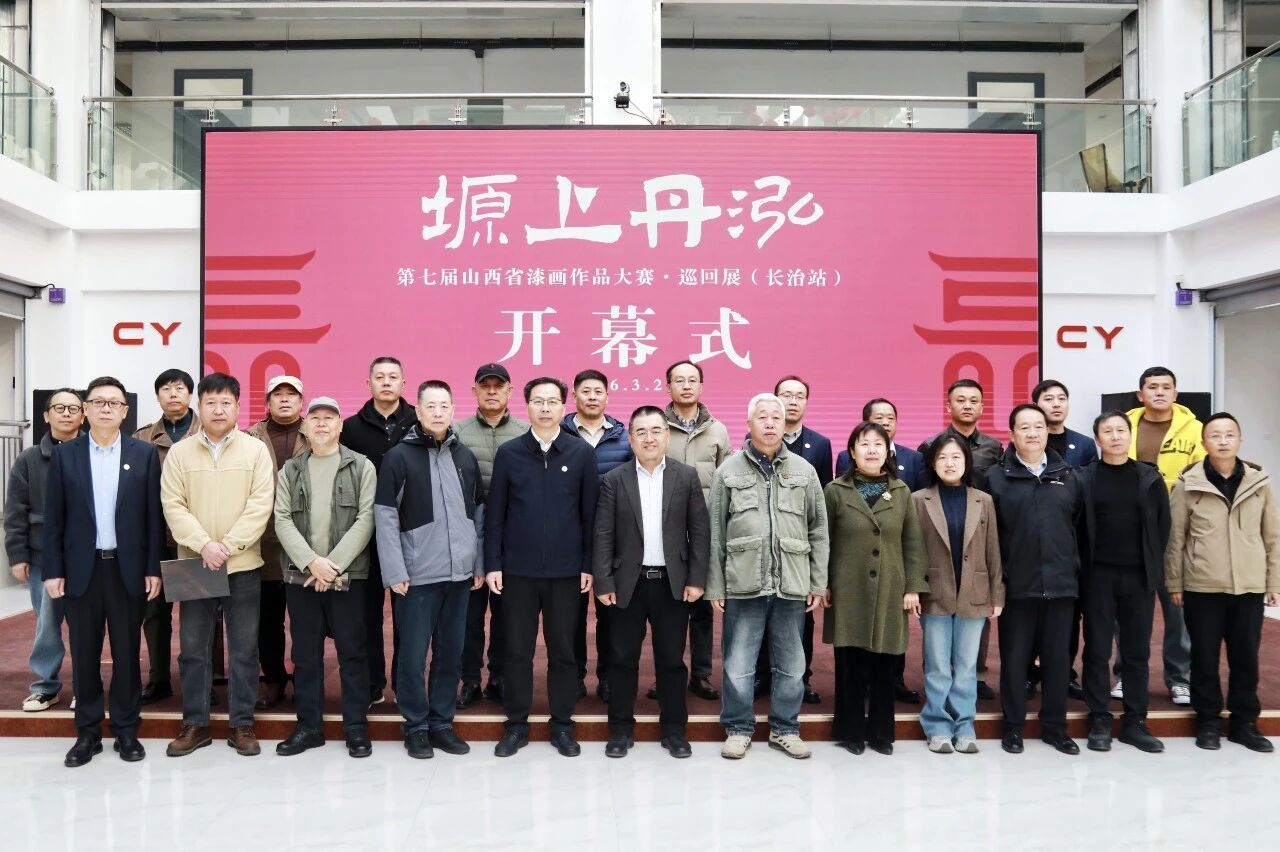 3月20日上午,“塬上丹泓”第七届山西省漆画作品大赛巡回展(长治站)开幕式在长治学院南校区3号教学楼1层展厅顺利举行。山西省美术家协会主席刘维东教授,副主席武贵文教授,省油画学会副会长金小民教授,长治市文学艺术联合会副主席史黎武,市美术家协会主席郜树先等省、市艺术界嘉宾出席活动。长治学院党委副书记史晓东,党委宣传部部长蔡璐及美术系领导班子成员、师生代表共同参加开幕式。开幕式由长治学院美术系主任苗勇忠主持。本次展览汇聚山西省漆画创作精品,为长治市带来一场独具匠心的漆艺视觉盛宴,也为美术爱好者与漆画创作者搭建了交流学习的优质平台。
