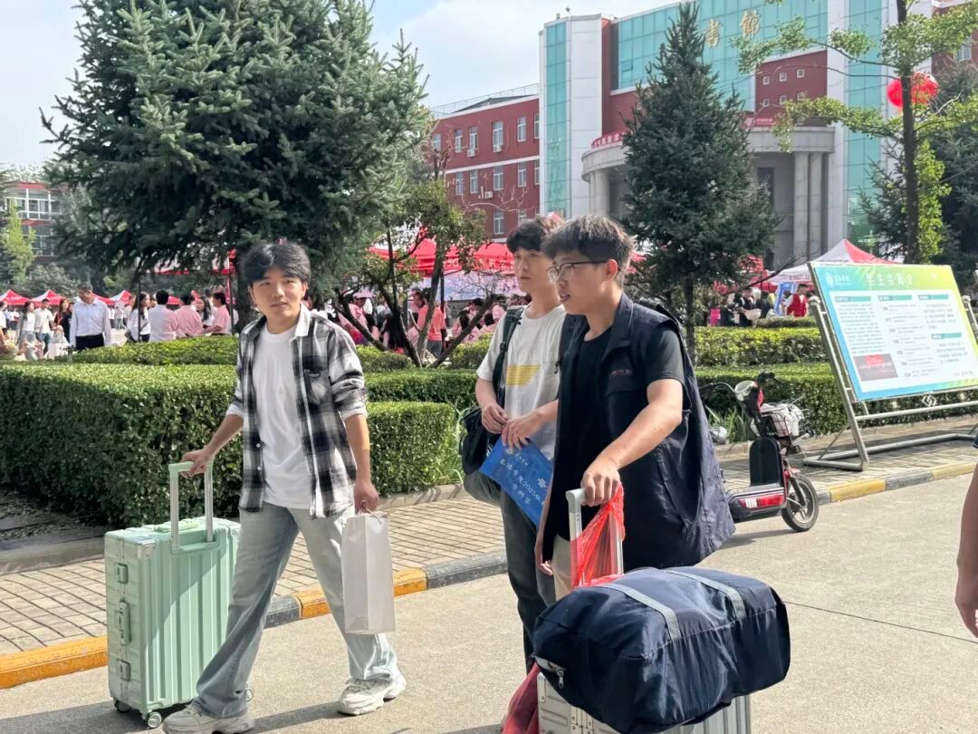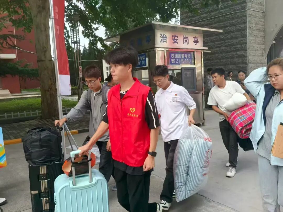 踏入校园的那一刻,身着志愿服装的同学们便带着饱满热忱主动上前,第一时间接过新同学手中沉甸甸的行李,不仅热情指引大家精准找到美术系报到点,还会全程协同新生将行李安全送到宿舍,彻底免去新生搬运行李的奔波之苦。