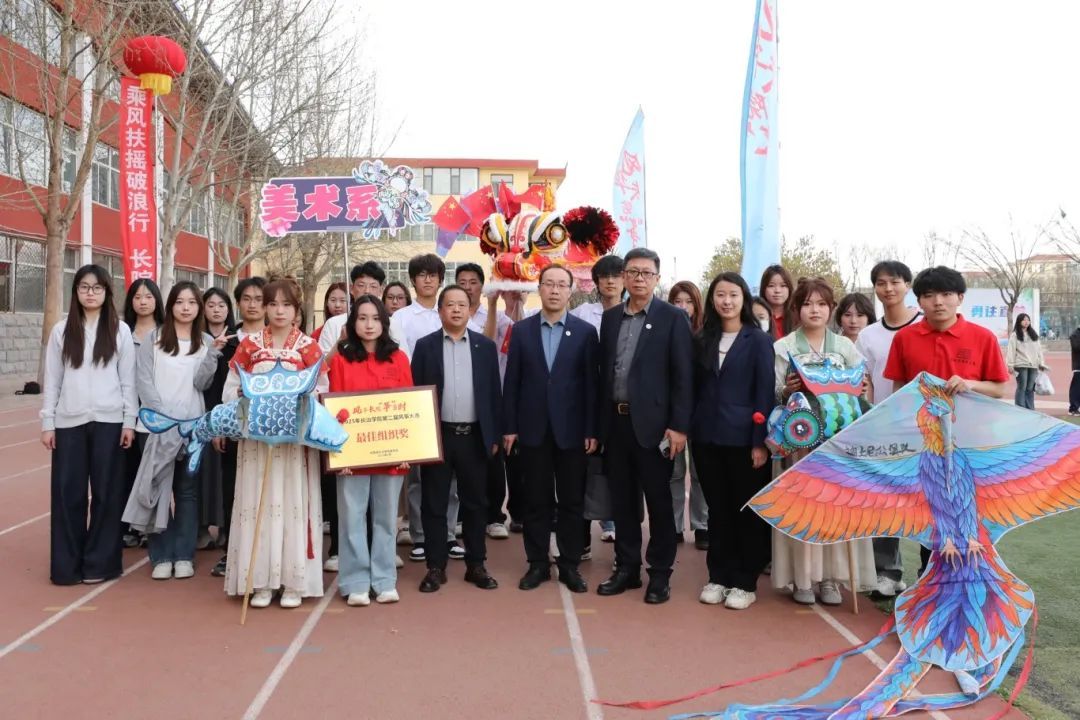 4月10日下午,我校在南校区田径场举办第二届“风华长院‘筝’当时”风筝大赛放飞决赛。我系党委书记董建新、主任苗勇忠、副书记王剑芳及全体参赛队员共赴这场传统文化与青春活力交织的盛会。