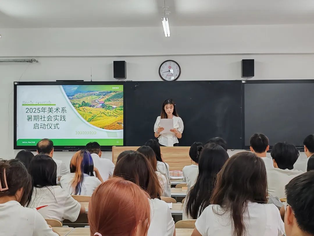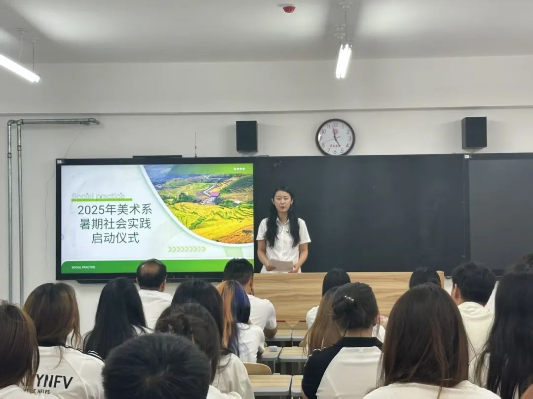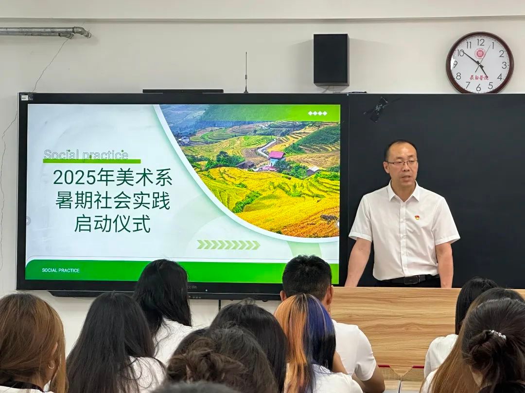 为确保2025年暑假社会实践顺利进行,美术系团委特举办暑期社会实践启动仪式。系党委书记董建新、团委副书记王晓光、辅导员姚凯及全体实践学生参会。