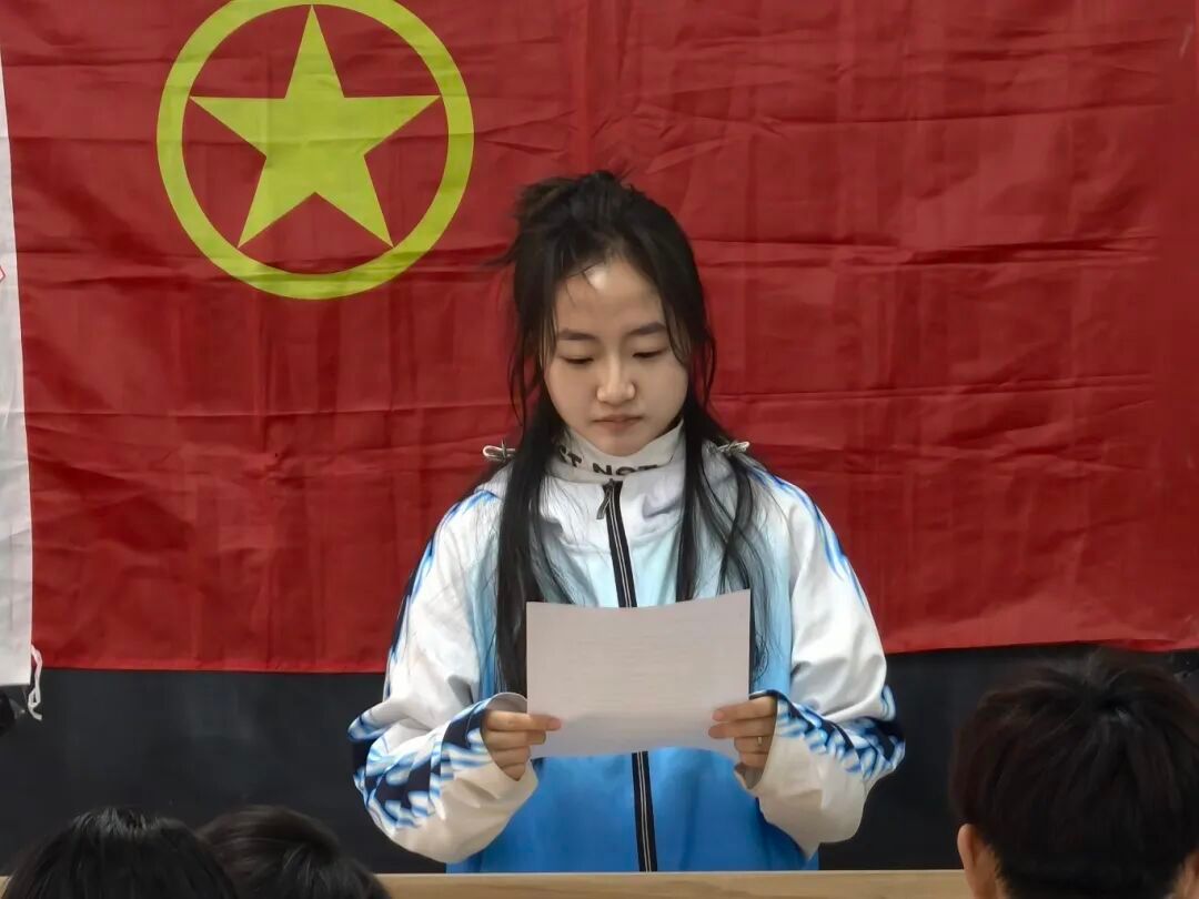 老团员代表谢雨格结合自身经历,鼓励学弟学妹们珍惜青春时光,积极投身志愿服务与校园文化建设,让团旗在实践中熠熠生辉。